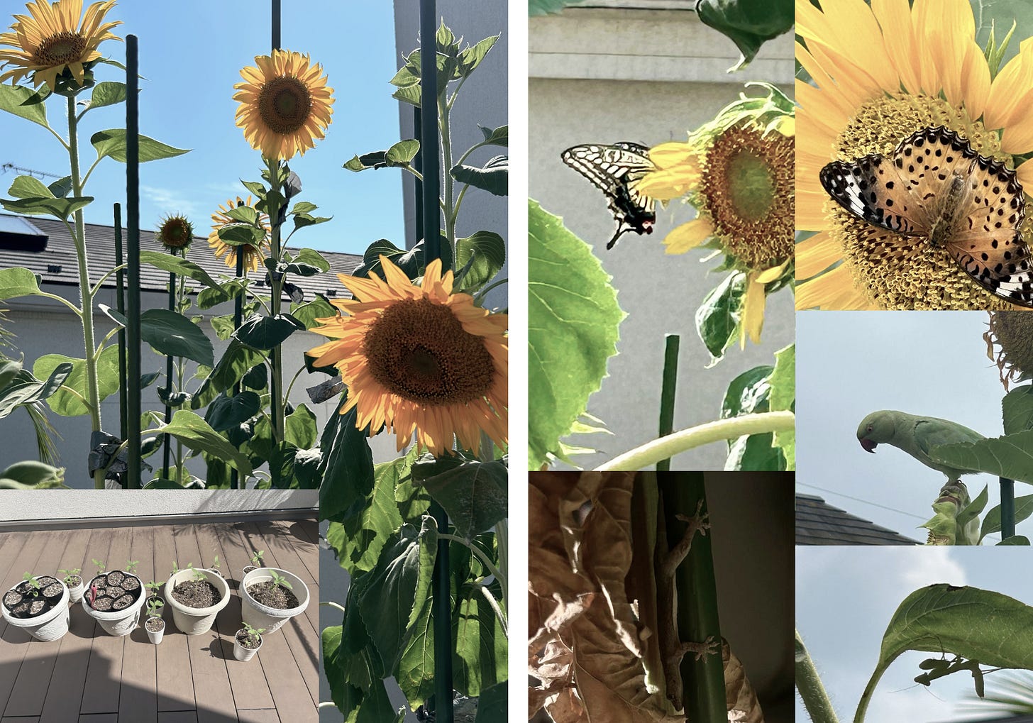To stay sane, I grow sunflowers on the balcony. This year, less than in the previous. “Don't chase butterflies, build a garden“ is an unquestionable truism. Just a few plants and flower pots, and a pond in a bucket, and they all come to you: the butterflies, the parrots, the dragonflies, the geckos at night, the spiders and ladybugs, and the praying mantis.